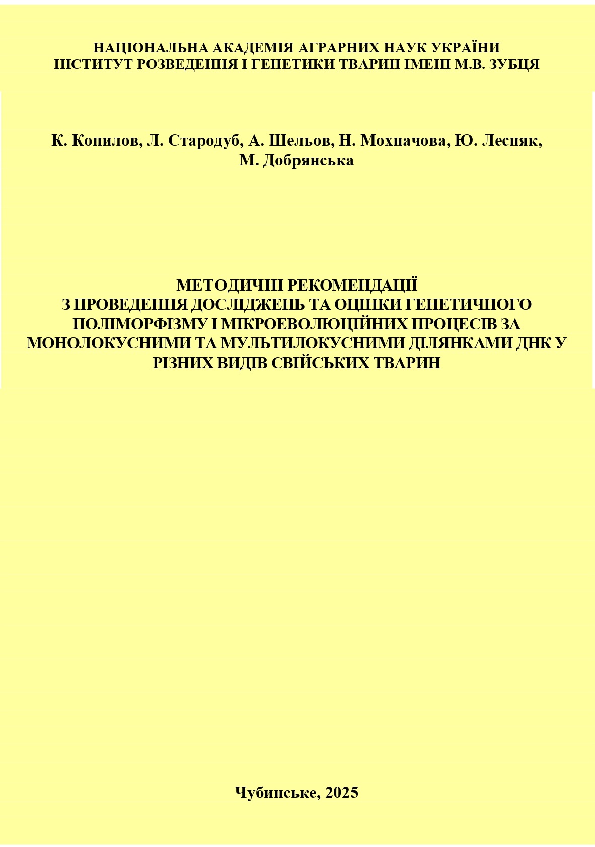 У методичних рекомендаціях висвітлено основні теоретичні основи і представлено методичні підходи з проведення молекулярно-генетичних досліджень та математико-статистичного аналізу результатів за мультилокусними та монолокусними ділянками ДНК у різних видів